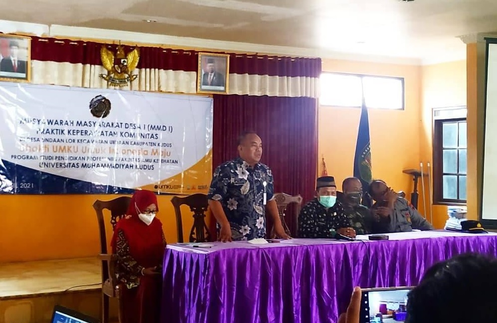 UNDAANLOR.DESA.ID ΜΆ Selasa (27/04/2021) telah dilaksanakan Musyawarah Masyarakat Desa I (MMD I) sekaligus serah terima mahasiswa KKN atau Praktik Keperawatan dari Universitas Muhammadiyah Kudus di Aula Balai Desa Undaan Lor.
