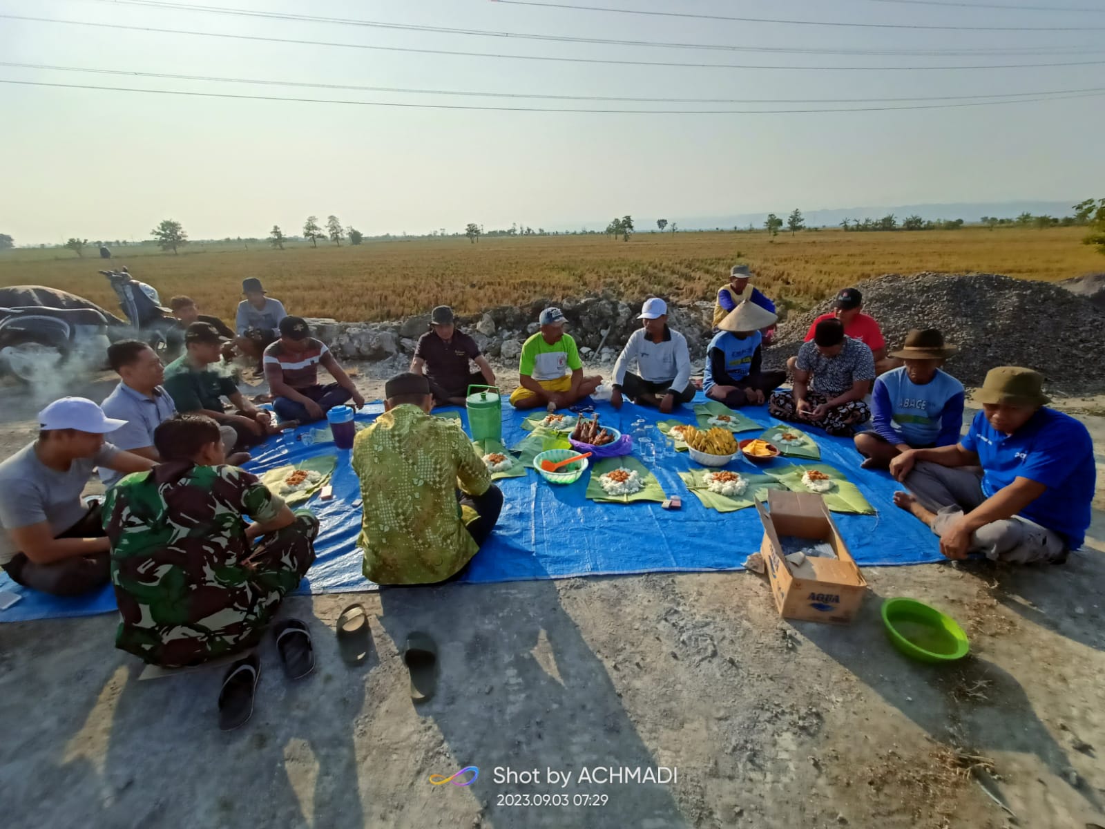 Desa Undaan Lor - Pada hari Ahad, tanggal 3 September 2023 di area sawah blok kauman rejo Pemerintah Desa Undaan Lor menyelenggarakan selamatan dimulainya pembangunan Dinding Penahan Jalan Usaha Tani (JUT) di area sawah blok kauman rejo desa Undaan Lor. Acara diselenggarakan secara sederhana dihadiri oleh Kepala Desa, Ketua RT, petani, gapoktan, P3A, KPMD, Perangkat Desa, BPD, dan TPK Desa Undaan Lor. Dengan maksud agar semua pekerja maupun panitia diberikan keselamatan dan kelancaran dari awal sampai akhir selama pengerjaan.